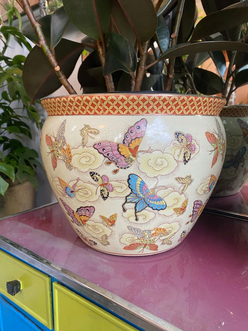 Hand painted butterflies and clouds on the outside, swimming Koi fish on the inside!