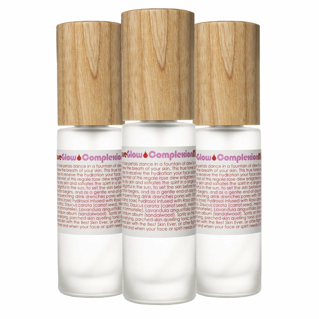 Living Libations Rose Glow Complexion Mist prepares the pores to receive the hydration it adores. The hydrosol of hundreds of resilient rose petals dance in a fountain of dew that awakens and renews skin and spirit. Rose Glow Complexion Mist is divine decadence to drench dry skin and to tone uneven texture. Spritz upon freshly cleansed face and during the day to revive and during flights to replenish. revivifying, during flights to hydrate skin.