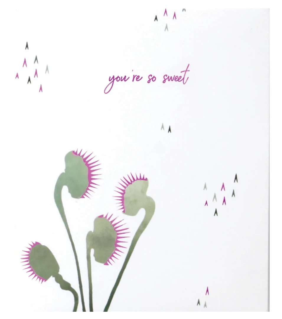 Face Reads: “You’re So Sweet”, opens up to “I could just eat you up” with pop up Venus fly trap