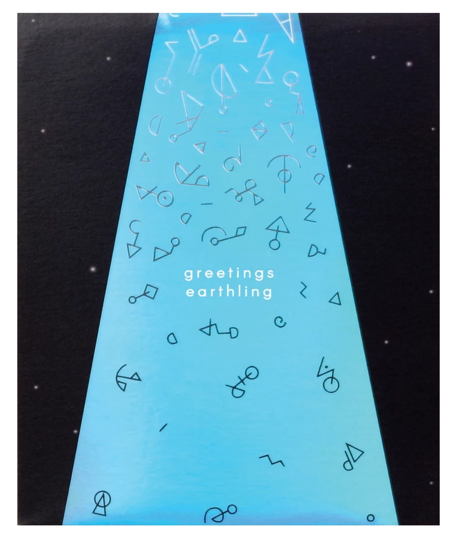 Face Reads: Greetings Earthling, opens to “you are out of this world” with pop up UFO zapping up a Cow