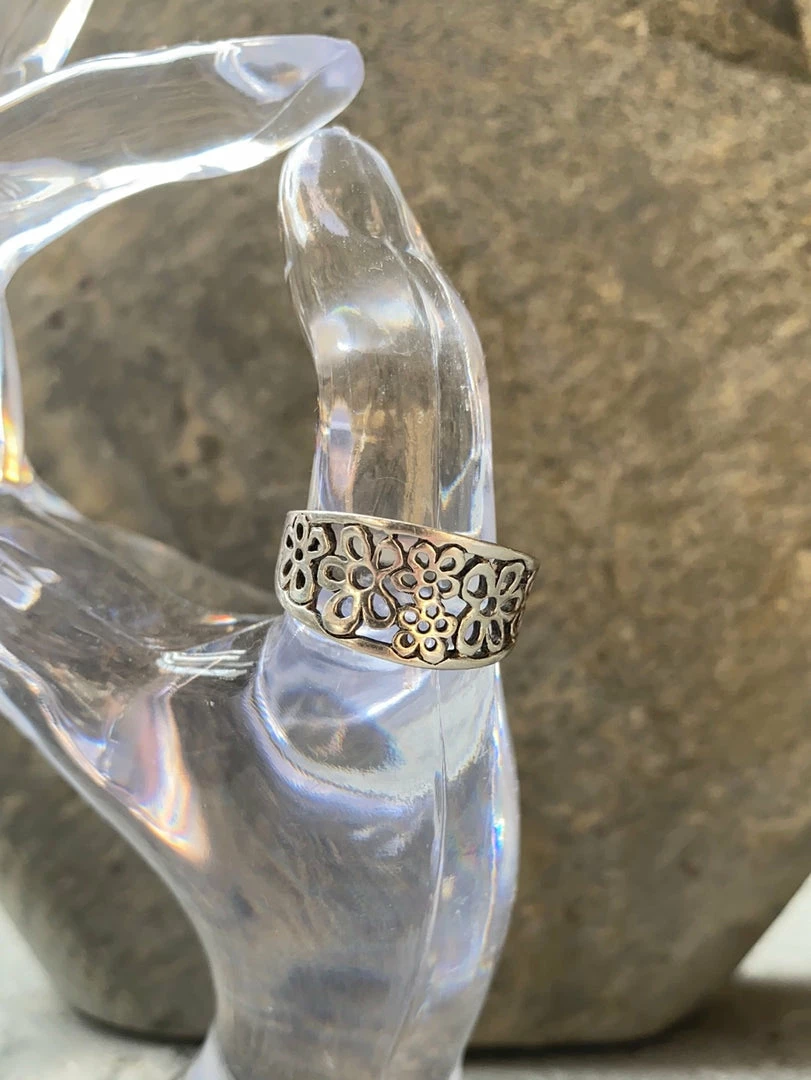Sweet and simple sterling band with a classic Y2K daisy flower pattern