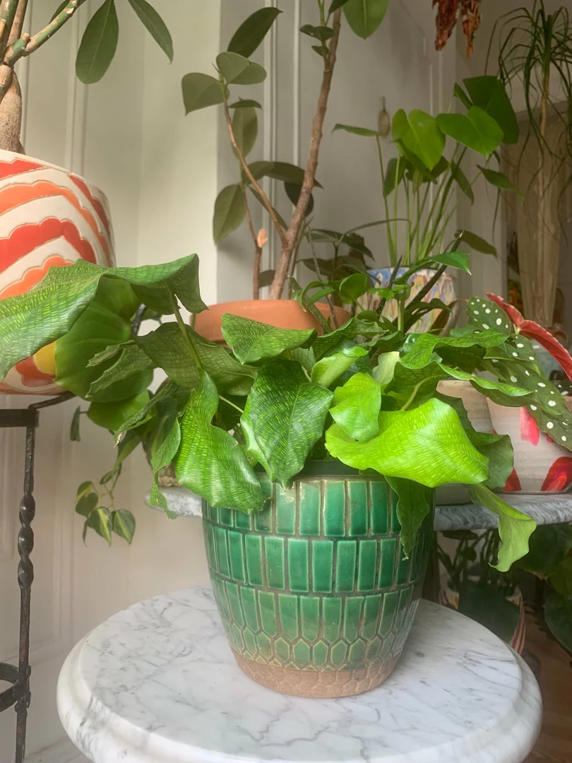 A mesmerizing, naturally variegated plant that prefers medium-to-low light. They’re an amazing species to have in a minimal lit home where cats or dogs wander- and yes, they’re real! Feed a generous amount of water to your Calathea every 7-10 days, when the soil is completely dry.
