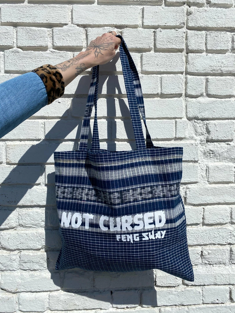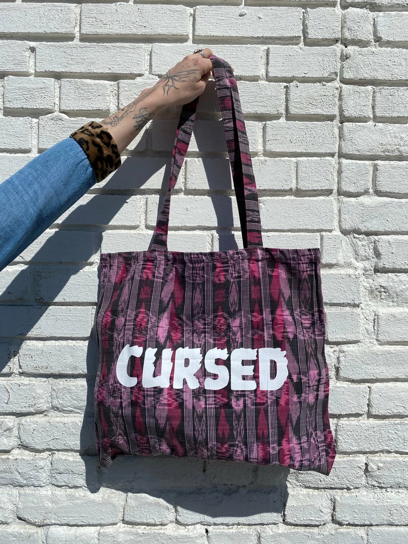 A new classic, our tote bag features Graphic CURSED/NOT CURSED statment. Good Vibes, each one of a kind
