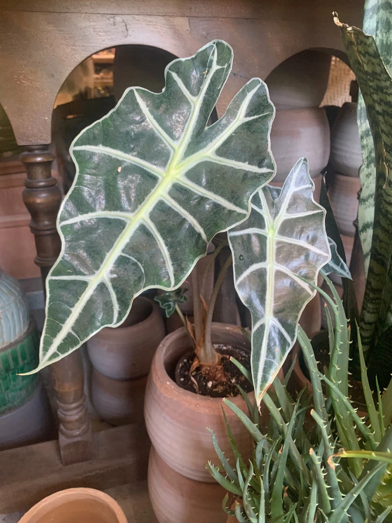 A beautiful tropical plant baby- and fun to grow! The leaves are large, hearty and arrow shaped with a gorgeous shade of green. She starts off small but can grow to 3 feet.
