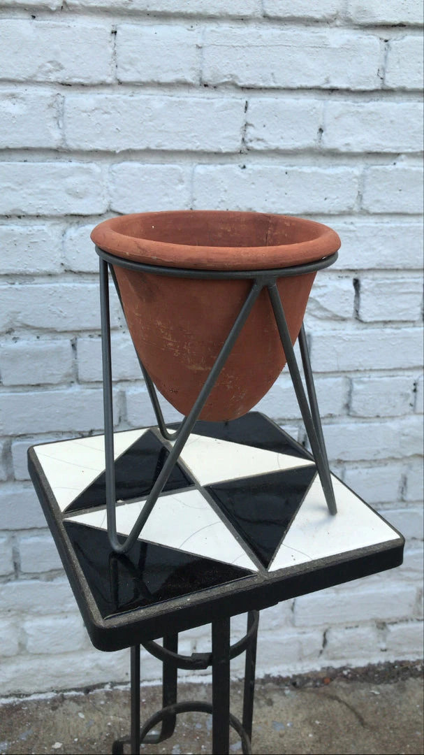 Gorgeous Rounded Terra Cotta planter Elevated in Iron Stand