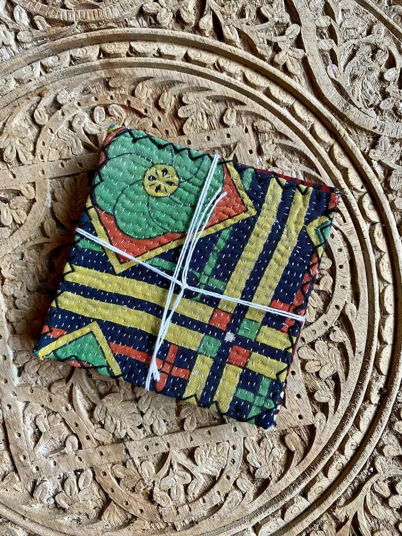 Vintage Kantha Coaster Set