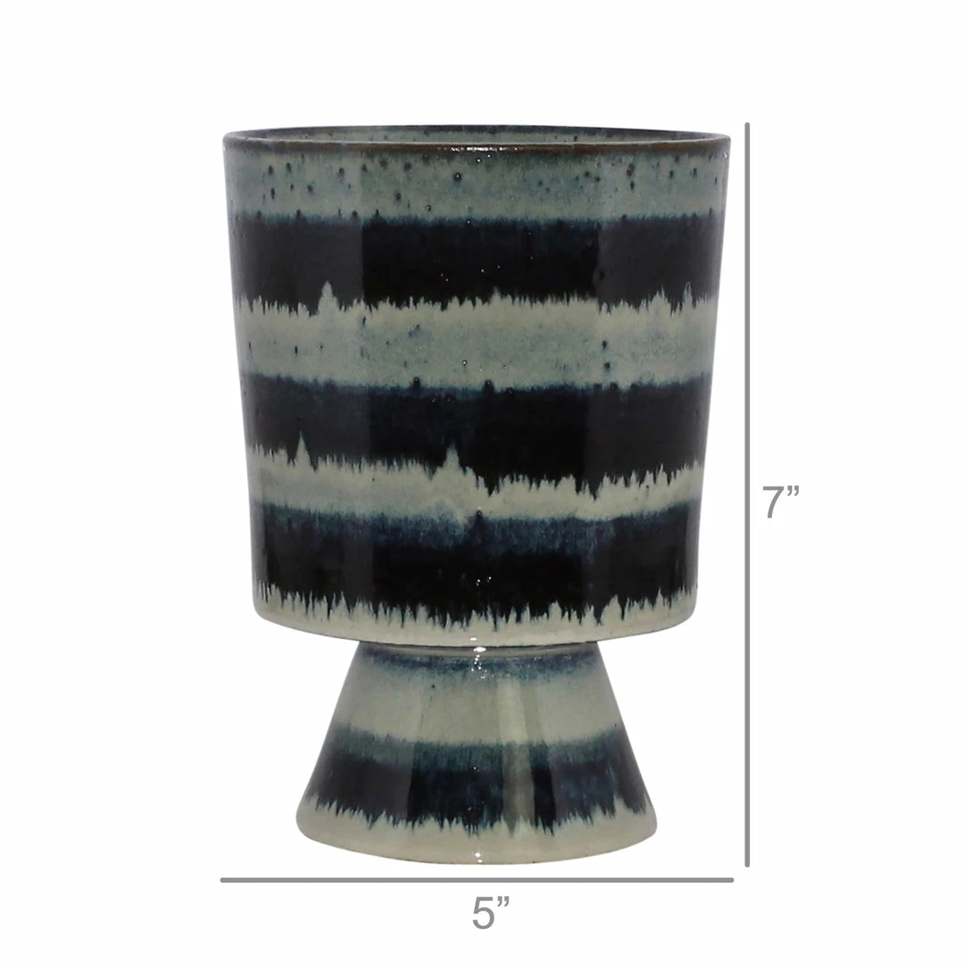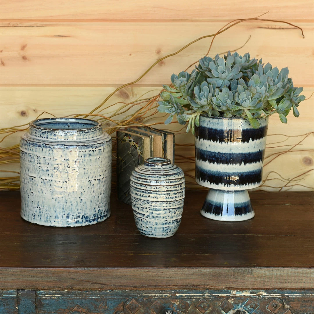 Undulating tones and textures of indigo inspired blue creates a unique ceramic vessel, handmade, each unique
