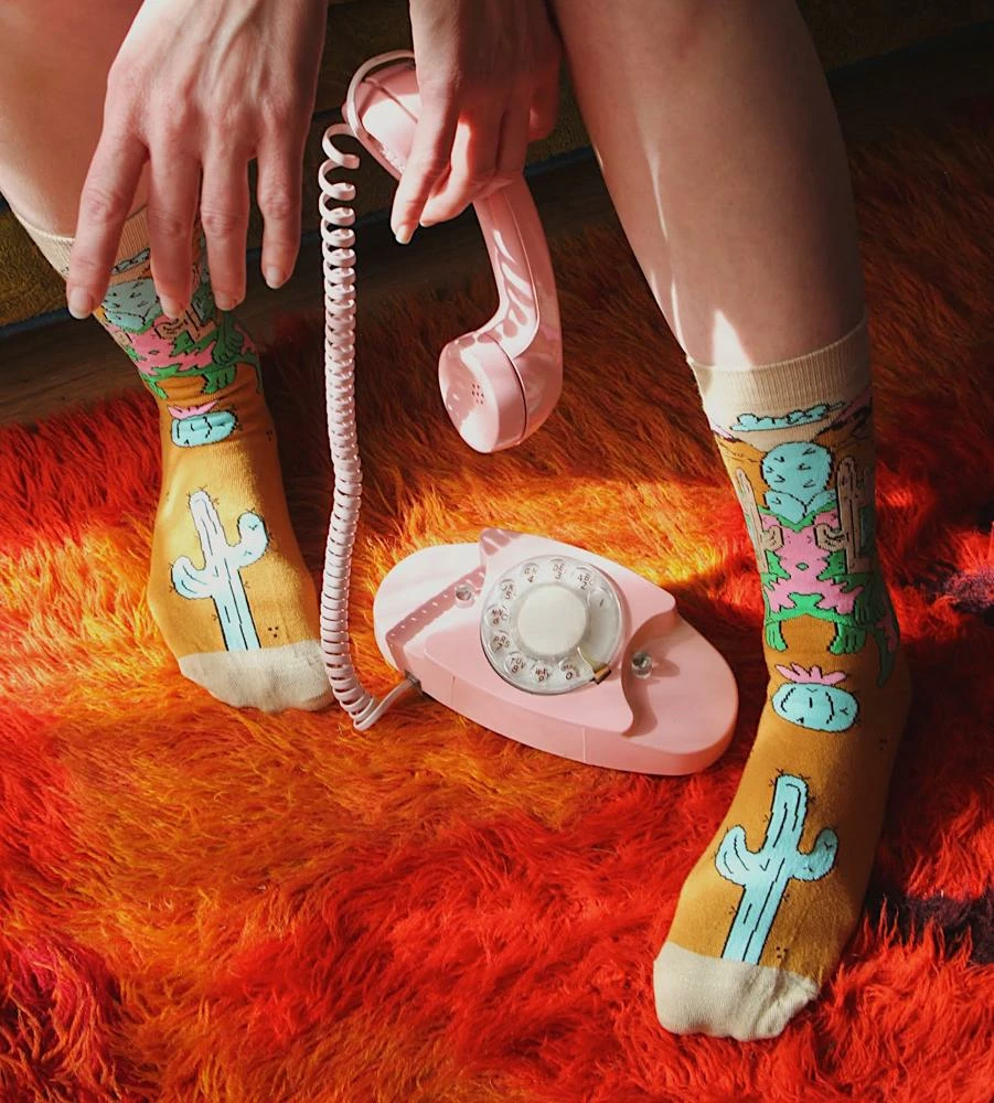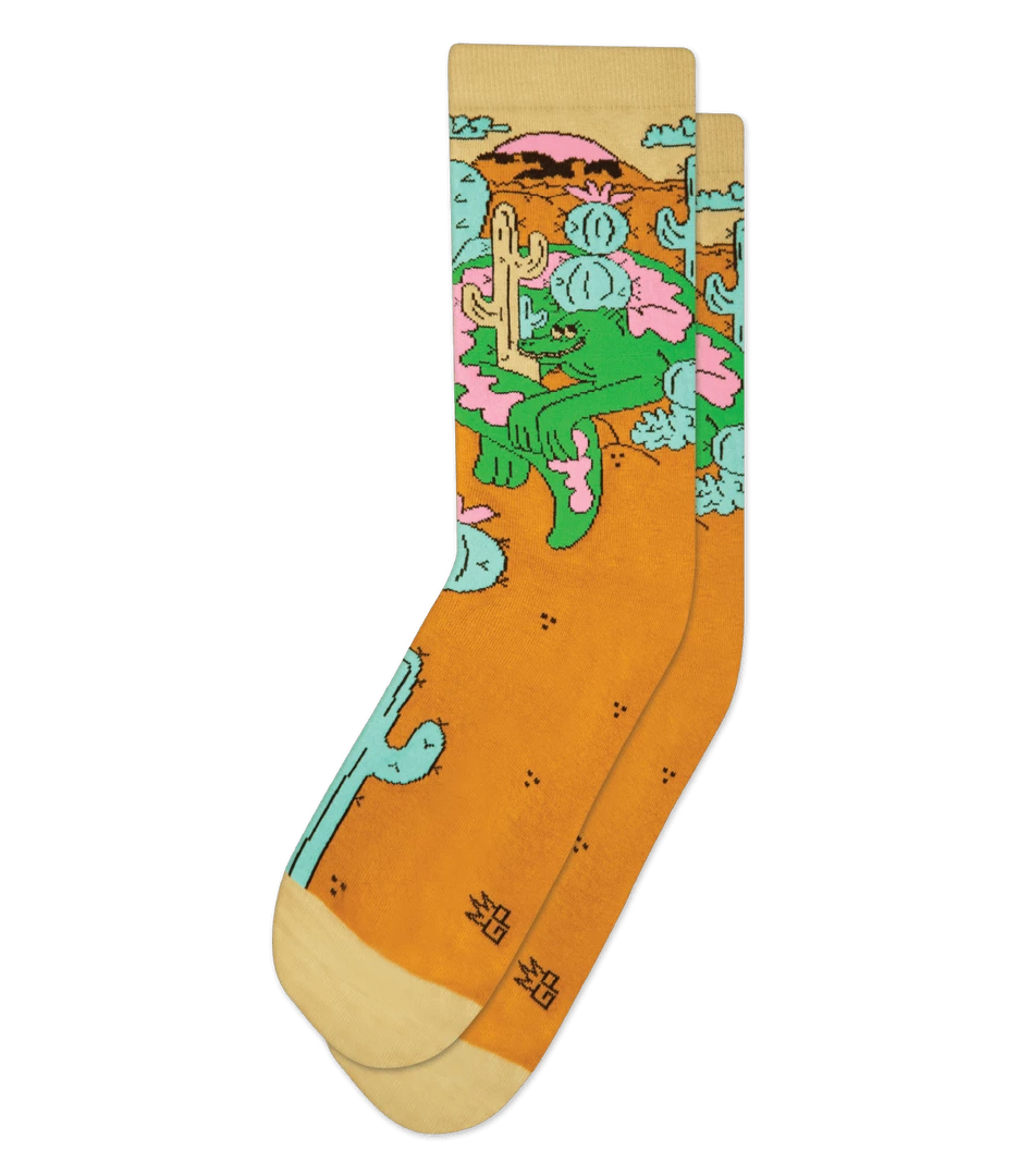 Take a vacation from real life with this friendly lazy lizard. This vibrant scene from the talented mind of Dreyfus will give your feet hot summer vibes all year ‘round. Perfect socks for business or pleasure!