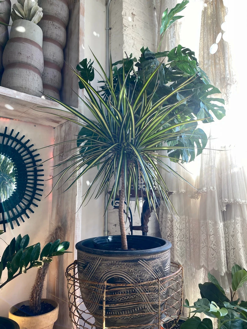 Sway Kween Recommended Care: Put your Dracena in bright- indirect light or medium light, not directly in the sun. They will talk to you when they’re ready to be watered, as their leaves will start to point downward. Wait for soil to dry between waterings every 10 days. They love fresh air and prefer and opened window.