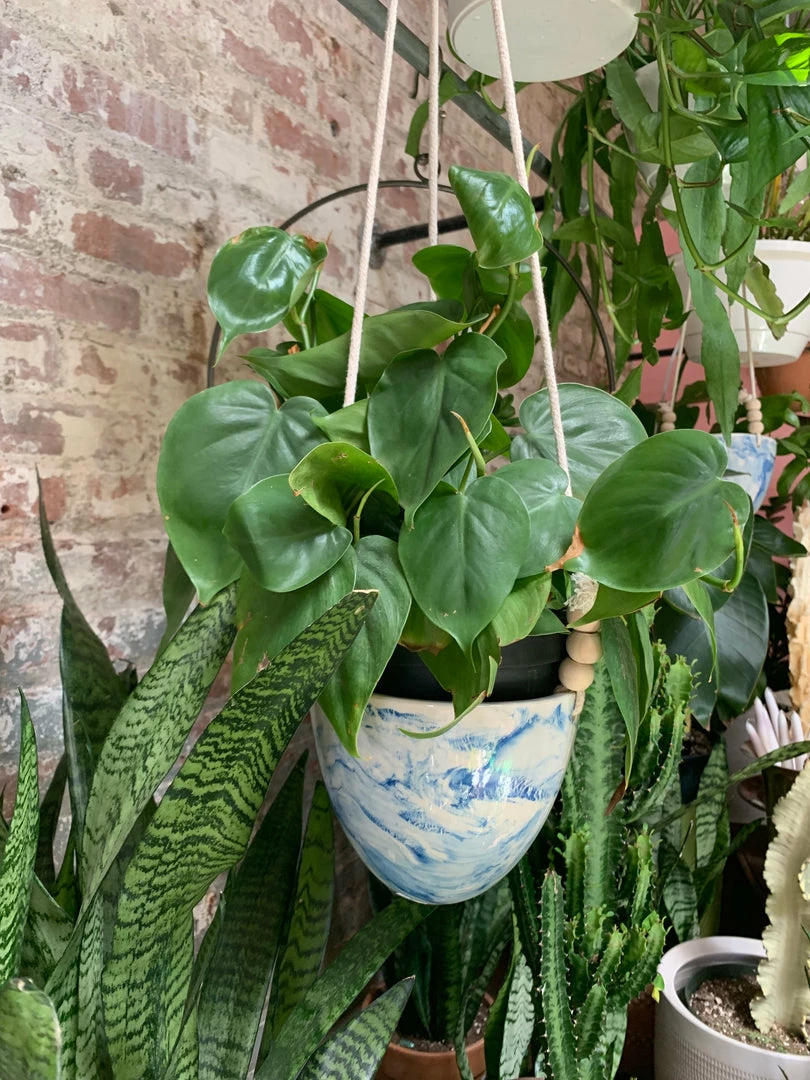 Brasils come from the Philodendron species and though it looks much similar to a Hanging Pothos, they are quite different care-wise. Let your Brasil hang high so that it will get long and luxurious. They prefer indirect light and only needs a water every two weeks, or when the soil is dry to the touch. A wonderful beginner plant for someone with a weary green thumb. A Brasil will talk to you when they’re thirsty as her leaves will start to look sad.