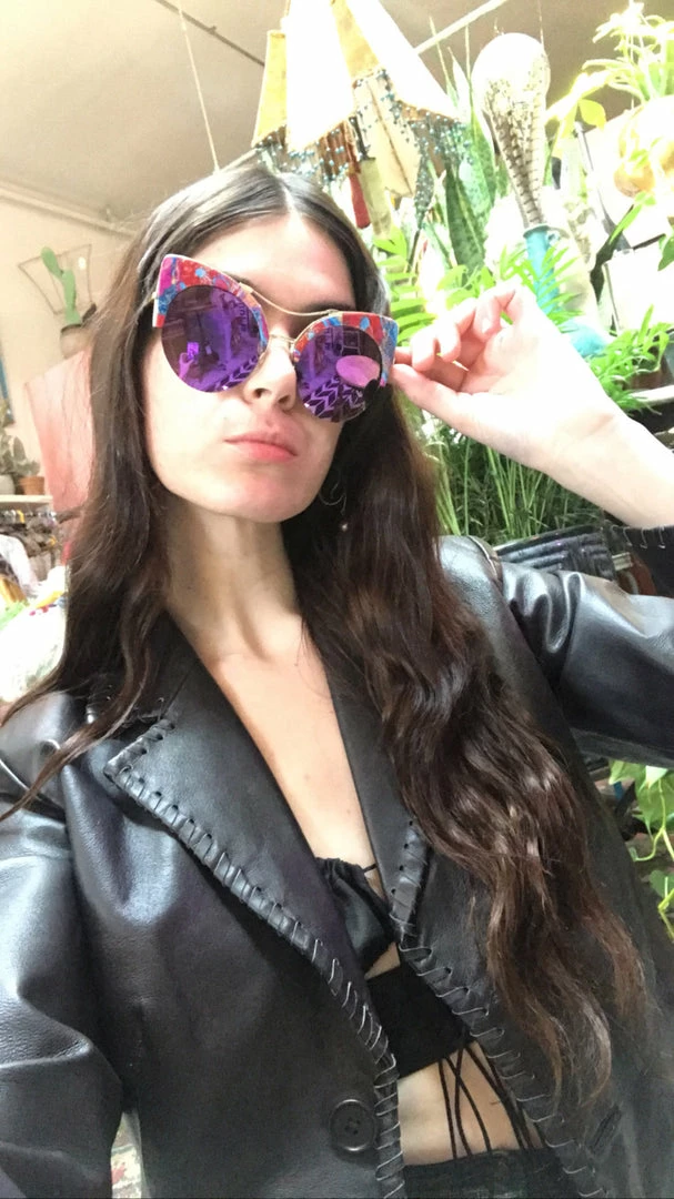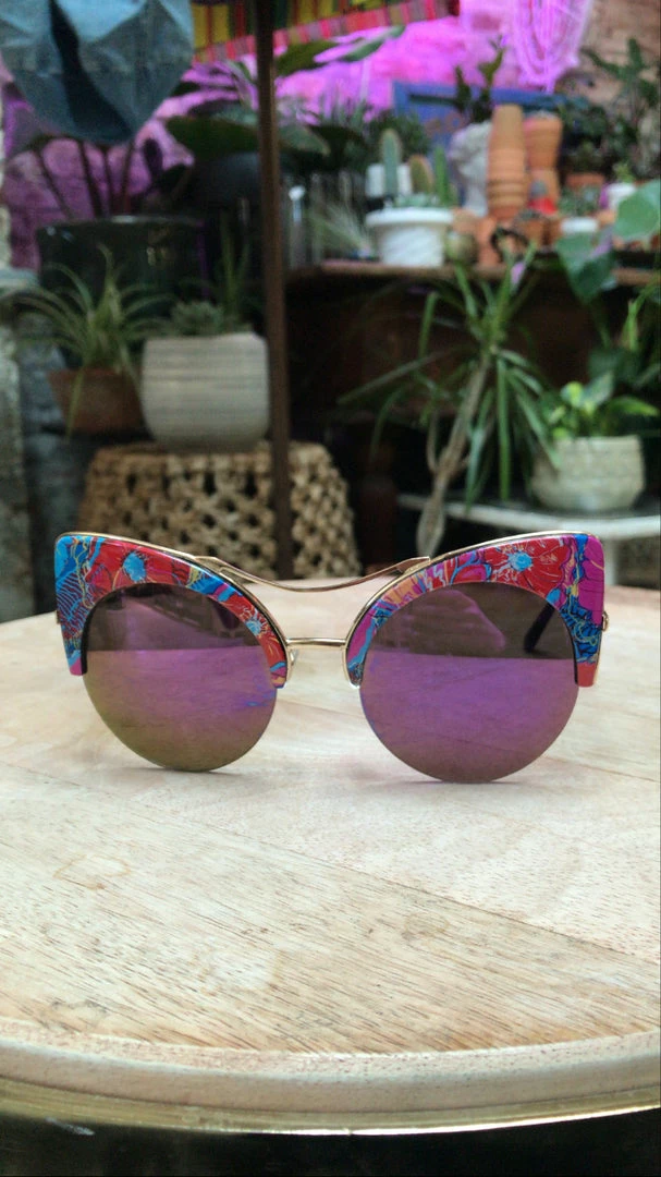 Floral Print Cat Eye Metal Framed Sunglasses with dark tinted lens