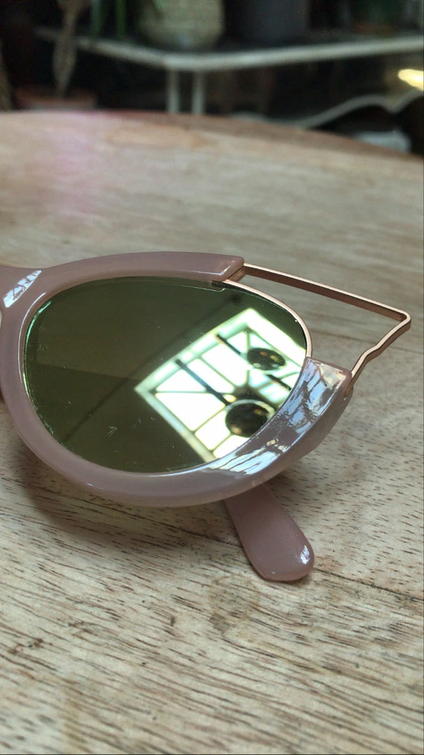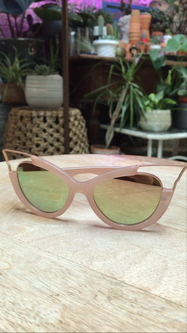Pink Iridescent Frame with Mirrored Lens and Hollowed out Metal Edge
