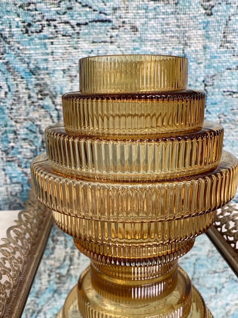 Tiered Amber Glass Flower Vase