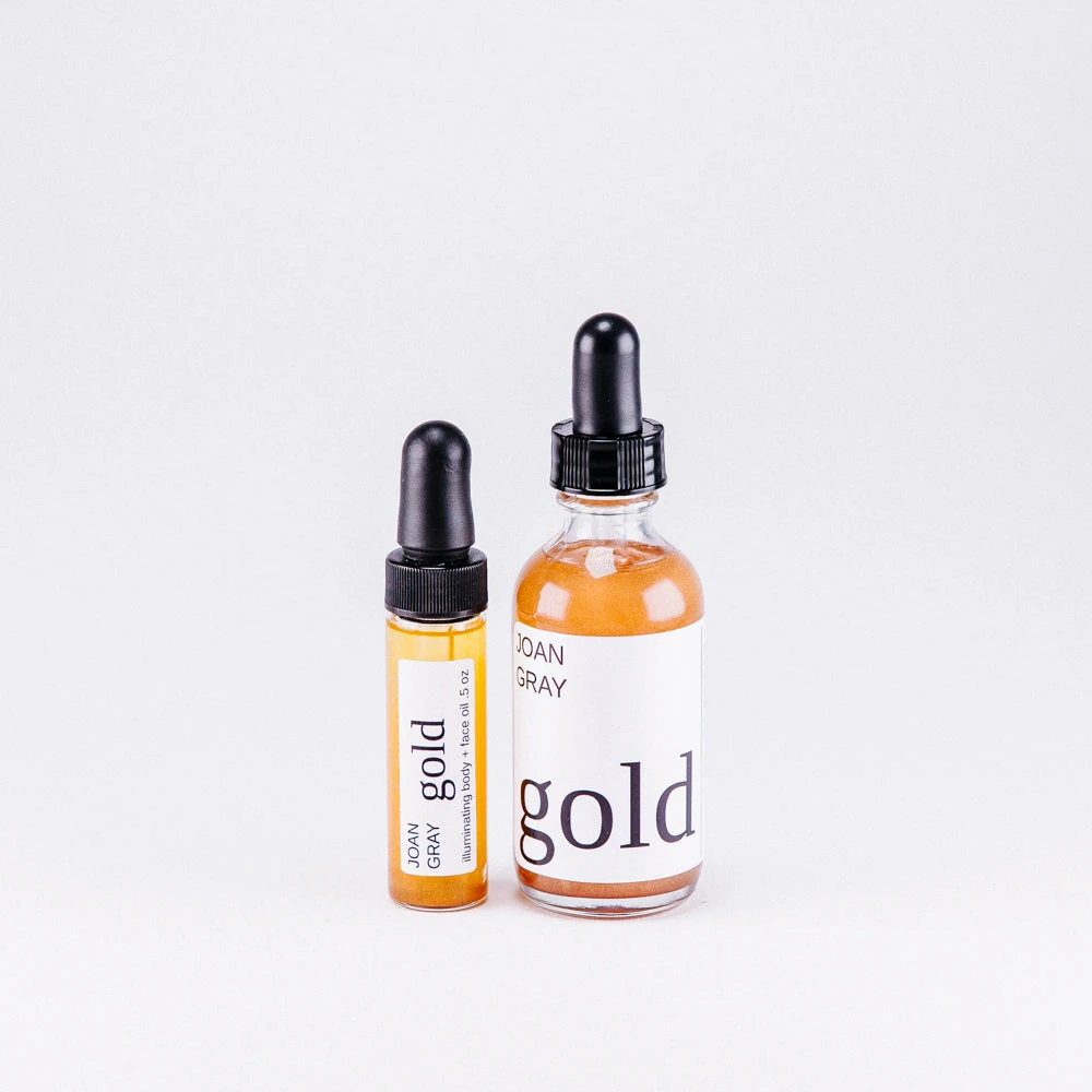 Summer Skin is Forever! with JOAN GRAY SKINCARE’s Gold- an all purpose illuminating oil. Use as a hydrating skin oil as well as a natural highlight! Add a little shimmer to your skincare routine as this product carries natural gold mica. Shake well before use.