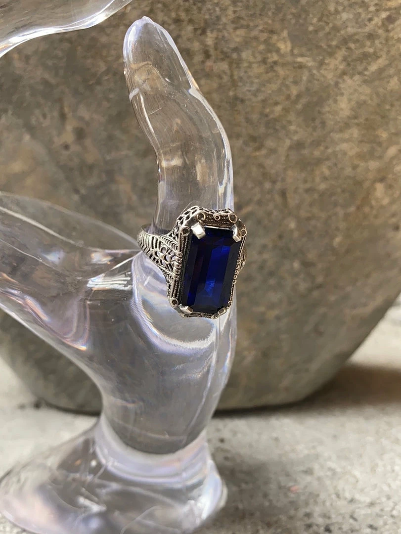 Deco Filigree Manmade Sapphire ~ Joy Heritage Collection