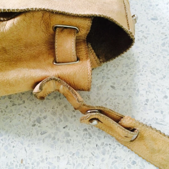 Tote style shoulder bag made of rich, buttery soft leather with stud details