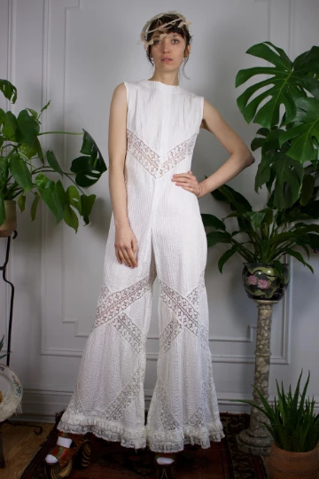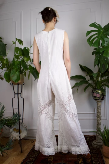 60s Cotton Mexican Resort Wedding Jumpsuit